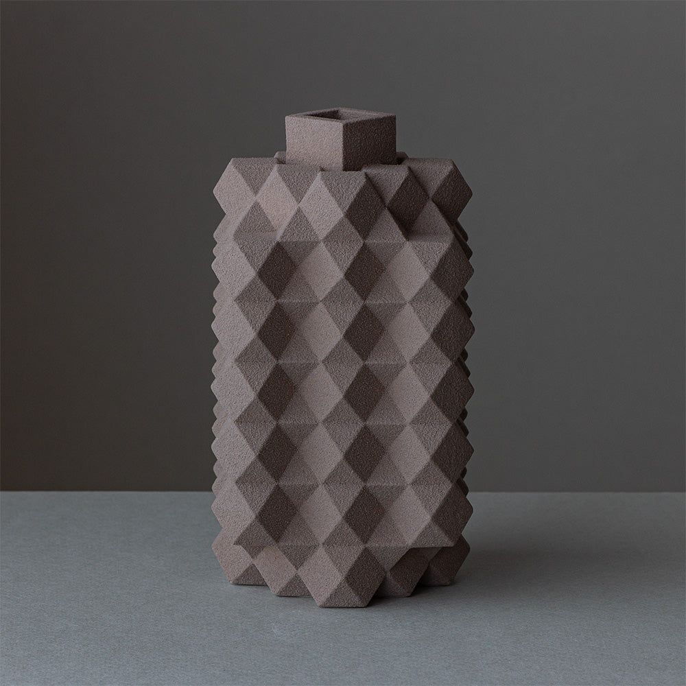 A vase composed of “polygons,” the geometric units used for 3DCG modeling.